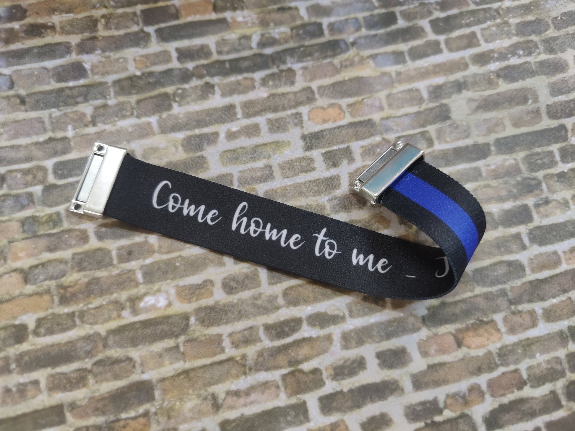 Blue Line - Thick Elastic Wristband Bracelet - stretchy elastic with magnetic clasp - heavy duty, 7/8" Police Support, law enforcement
