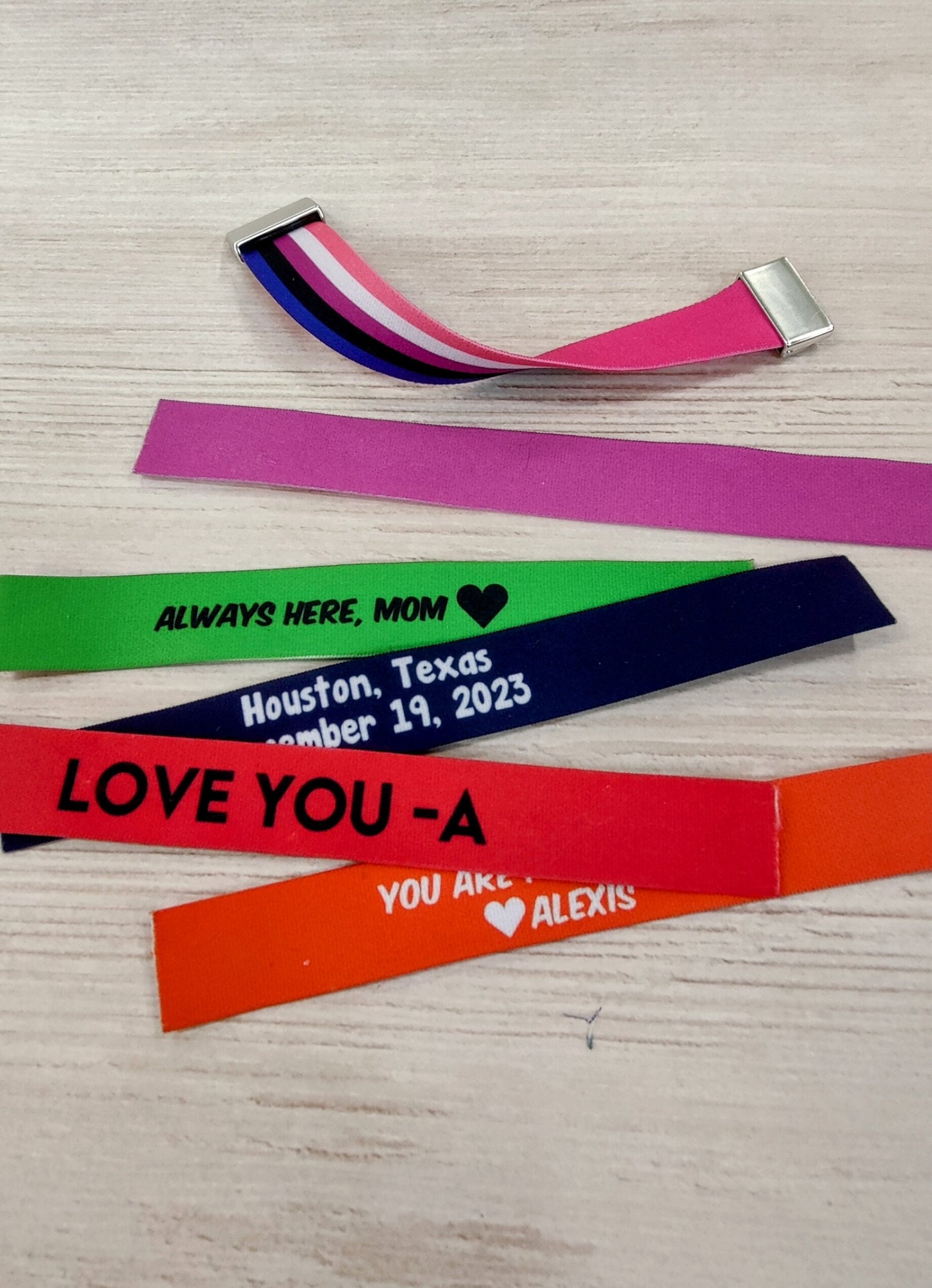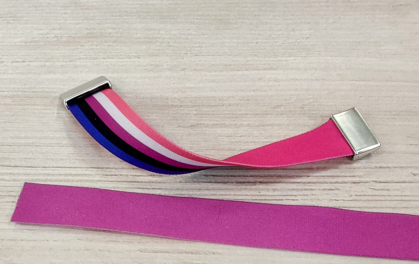 Front side printed with stripes, pick the backside color! (no extra cost) 20MM wide thick elastic bracelet /wrist band