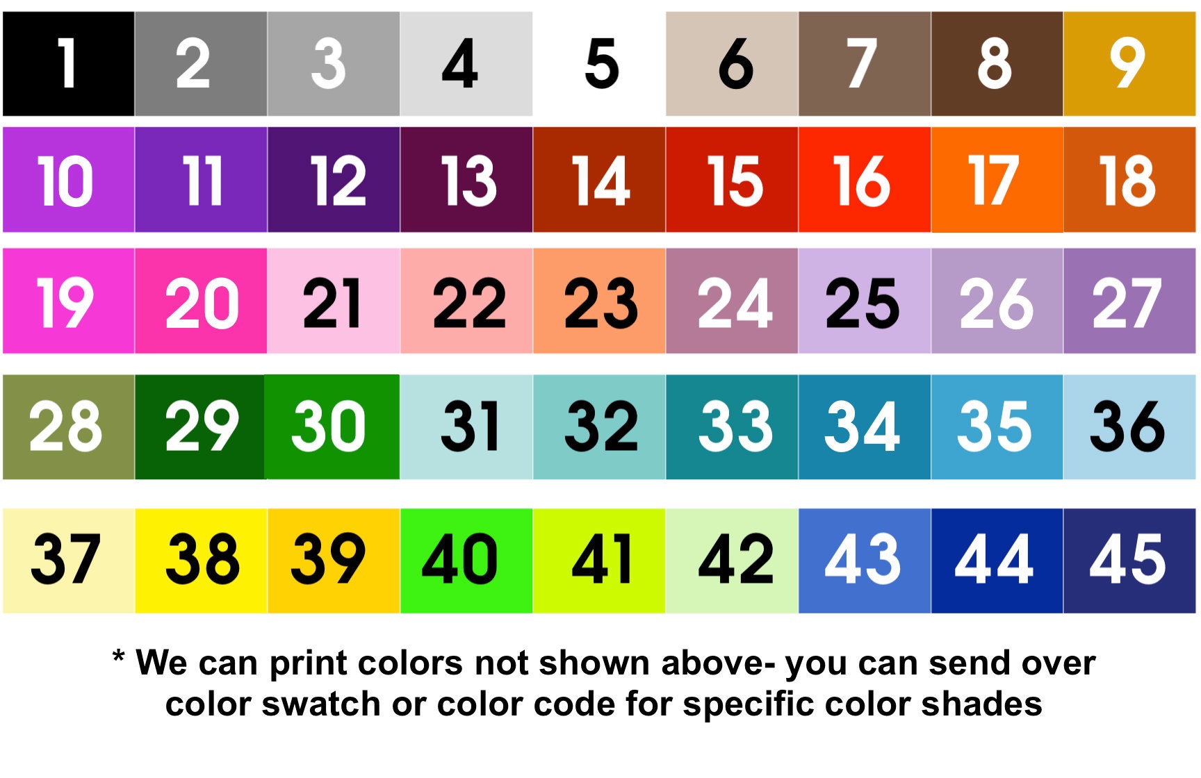 Background color on front can be any color. please note middle color (behind text) and end color. backside will match end color.