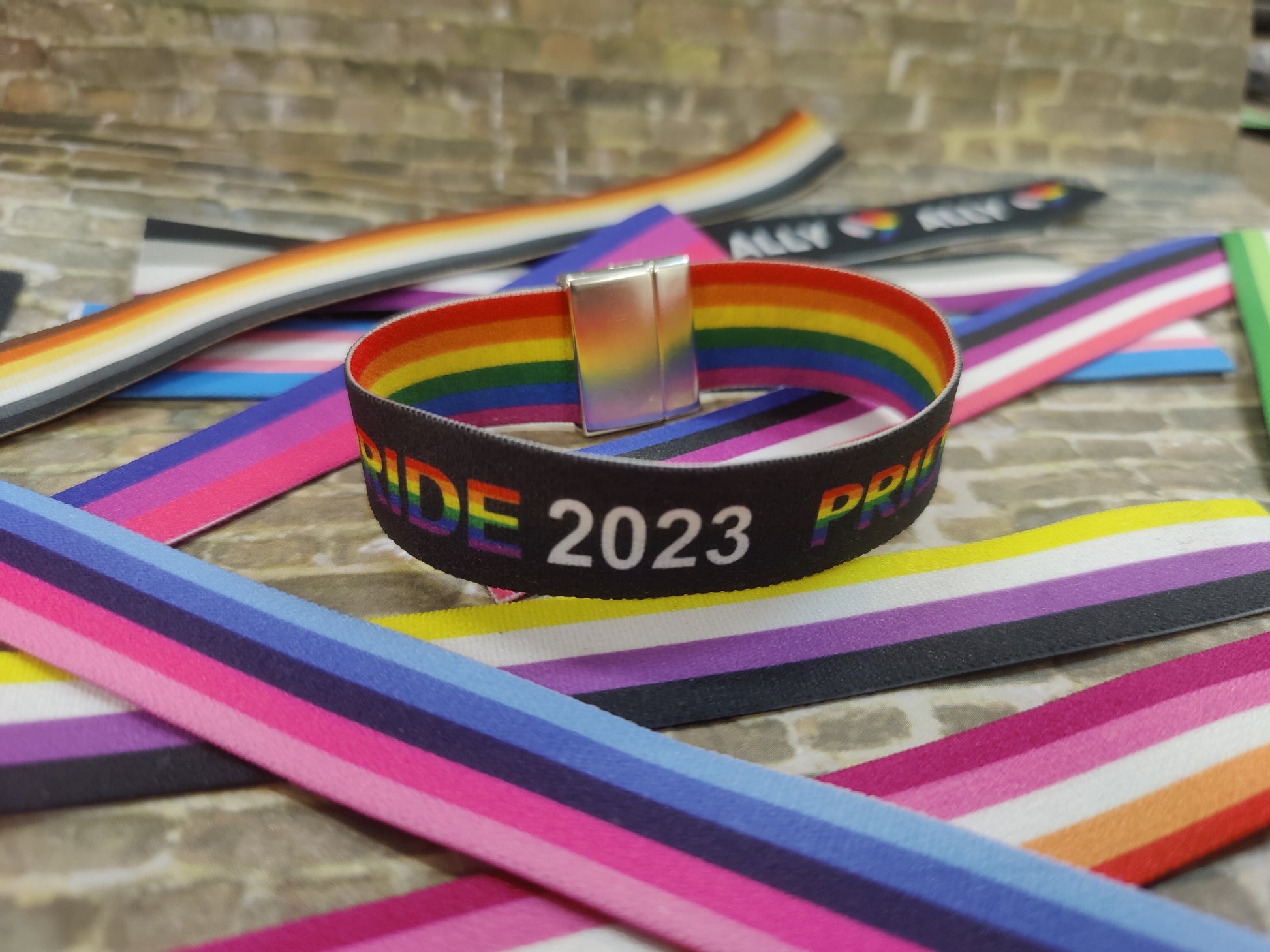 Premium Pride 2023- Elastic Wristband Bracelet - stretchy elastic with magnetic clasp - heavy duty, design does not fade/peel, washable 7/8"